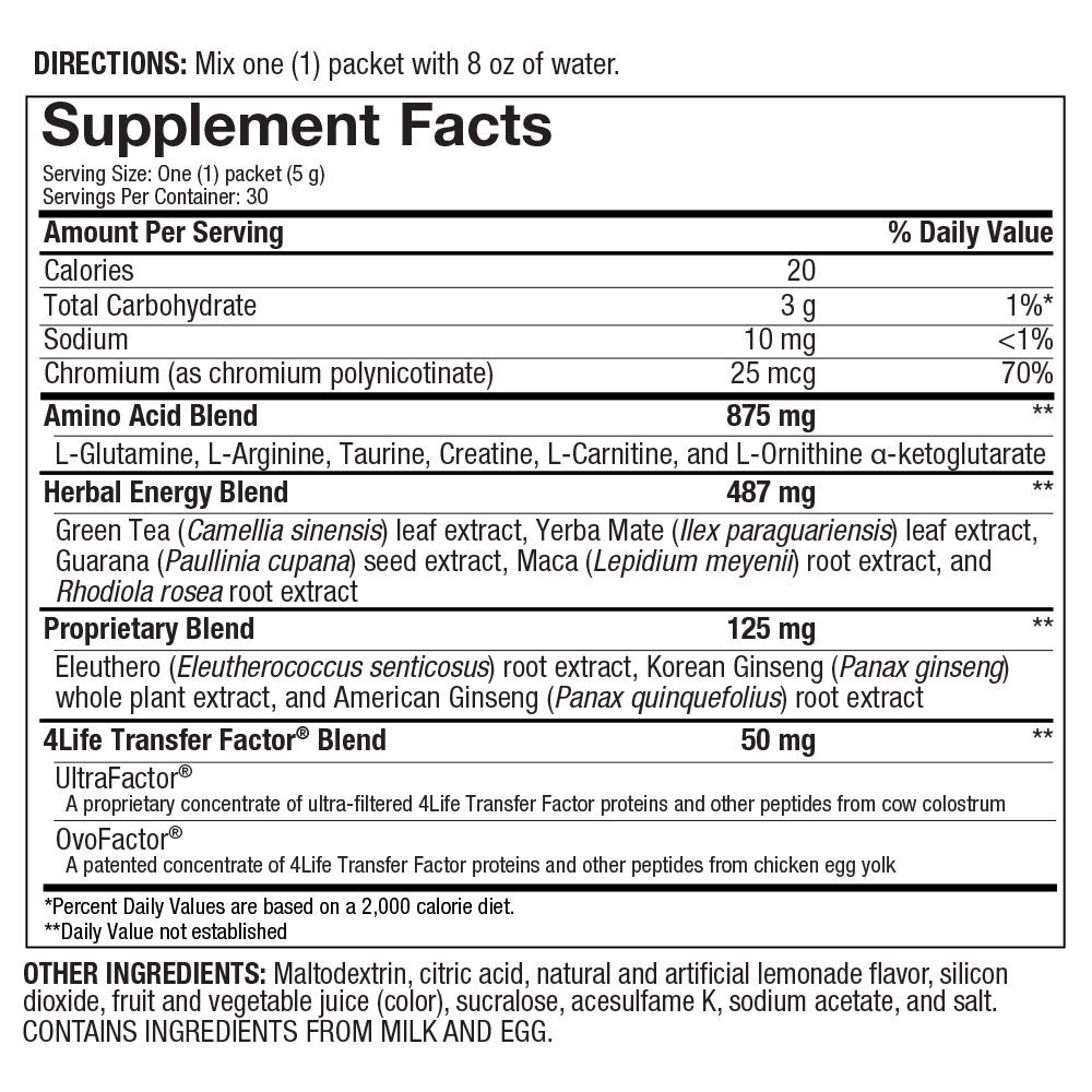 Paquetes cargados con 4Life Transfer Factor® y una mezcla de ingredientes energéticos para llevar contigo*